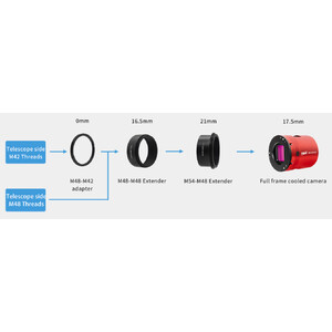 Neigungsadapter: Die ASI4400MC Pro verfügt über drei Paare von Einstellschrauben für die Sensorneigung. Jedes Paar besteht aus einer Druck- und einer Zugschraube, mit denen Sie die Ausrichtung des Sensors zur optischen Achse Ihres Teleskops präzise justieren können. Diese Justierung hilft, selbst leichte Neigungen zu korrigieren, die dazu führen können, dass Sterne an den Bildrändern verzerrt oder unscharf erscheinen. So wird eine scharfe und gleichmäßige Fokussierung über das gesamte Bild gewährleistet.