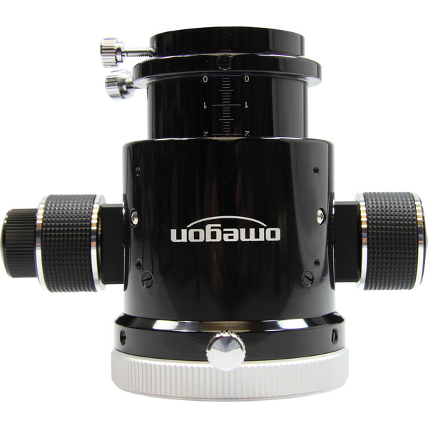 Bearing Type nennt sich das neue verbesserte Crayforddesign. Schon der Crayfordauszug hatte den Vorteil einer spielfreien Fokussierung. Das Geheimnis des Omegon Auszuges ist eine Rollen-Kugellagerung: 8 groß dimensionierte Rollen halten das Innenrohr stabil in Position. Das Rohr gleitet geschmeidig in jede gewünschte Lage. Eine weitere Zahnstange macht den Okularauszug sehr stabil: Das Rohr rutscht nicht einfach durch, wie das bei "normalen" Crayfordauszügen der Fall ist.