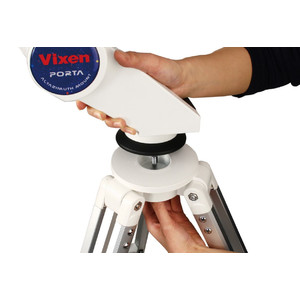Die Porta II Montierung kann mit einer einfachen Schraube vom Stativ gelöst werden. Dies geht einfach per Hand mit einer griffigen Schraube, so dass Sie Stativ und Montierung getrennt transportieren können und trotzdem schnell einsatzbereit sind.