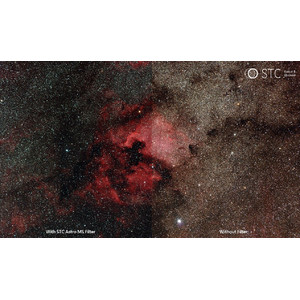 - Der STC Astro-Multispektralfilter reduziert Störungen durch künstliche Beleuchtung in der Stadt und verstärkt die Wellenlängen von Hα, Hβ, OIII und SII.