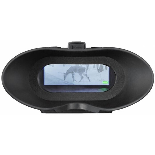 Das digitale Nachtsichtgerät ohne Vergrößerungsfaktor ist extra für die Fortbewegung mit diesem Gerät konzipiert. Dank der mitgelieferten Kopfhalterung können Sie sich ohne Probleme durch den Wald oder den Raum bewegen. Aber auch für das Beobachten von großen Flächen oder dem Garten ist dieses bestens geeignet, da es einen sehr großen Bereich auf einen Blick abdeckt. Durch die digitale Ausführung ist es unempfindlich gegen Überstrahlung. Der eingebaute Akku ermöglicht eine Beobachtungsdauer von ca. 8 Stunden. Aufladen können Sie diesen über das mitgelieferte USB Kabel oder eine optionale, handelsübliche Powerbank. Das gleichzeitige Beoachten und betreiben mit der Powerbank ist natürlich möglich. Die integrierte Infrarotbeleuchtung ermöglicht ohne Probleme ein Beobachten in völliger Dunkelheit. Durch den großen Einblick kann man auch mit etwas Abstand angenehm durch das Nachtsichtgerät beobachten. Durch den 2-fachen digitalen Zoom können Sie ihre Objekte näher betrachten ohne sich dem Objekt selber zu nähern. Die Erfassungsreichweite liegt bei ca. 70m. Beobachten können Sie bei diesem Gerät ganz komfortabel mit beiden Augen.