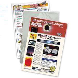 Achtung: Diese Folie ist ausschließlich für die Fotografie geeignet. Für die visuelle Beobachtung verwenden Sie bitte Baader Filterfolie AstroSolar® Safety Folie OD 5.0, 20x29 cm