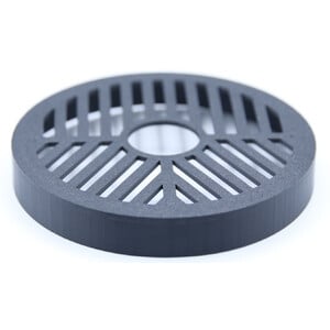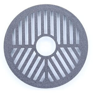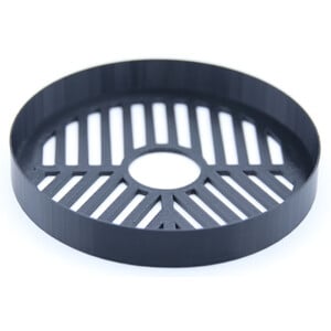 Die Fokusmaske nach Pavel Bahtinov erleichtert das exakte Fokussieren, auf das es insbesondere in der Astrofotografie ankommt. Die Maske wird vorne am Tubus, bzw. Objektiv angebracht. Beim Blick auf einen Stern erzeugt sie ein Strahlenmuster. Wenn der lange Strahl die beiden etwas kürzeren in der Mitte symmetrisch schneidet, ist der Fokus korrekt eingestellt. Durch die vielen Öffnungsschlitze ist die Bahtinov-Maske auch an relativ lichtschwachen Sternen einsetzbar. Das ist ein Vorteil gegenüber der klassischen Scheinerblende.