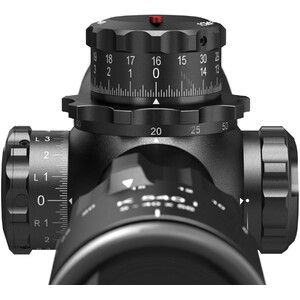 Die Türme arbeiten mit 0,1-MRAD-Klicks und 100 Klicks pro Umdrehung. Der große Verstellbereich von 2,9 m/100 m in der Höhe und 1,2 m/100 m in der Seite bietet ausreichend Reserven für extreme Long-Range-Distanzen und anspruchsvolle ballistische Korrekturen.