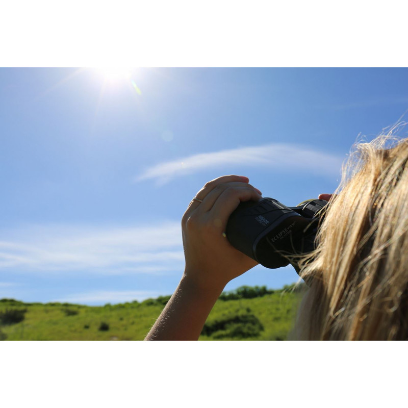 Die eigentliche Besonderheit sind aber die beiden Sonnenfilter in aufsteckbaren Fassungeng. Diese Fassungen werden über Schrauben sicher geklemmt. So gilt für dieses Fernglas ausnahmsweise nicht der Sicherheitshinweis, niemals in die Sonne zu schauen. Mit dem zertifizierten Filtern ist die Sonnenbeobachtung gefahrlos möglich. Beobachten Sie damit Sonnenflecken oder den Merkurtranist. Das leichte Fernglas ist auch sehr gut für Finsternisjäger geeignet: Nehmen Sie es mit zur nächsten Sonnenfinsternis!