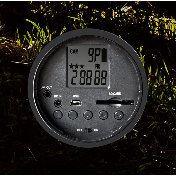 Die Beobachtungskamera bietet tagsüber und nachts eine hohe Auflösung von 8 MP (interpoliert). Dank Infrarotblitz wird kein Wild verschreckt. Foto- und HD Videoaufnahmen werden automatisch durch Bewegungssensoren ausgelöst; die Daten der Aufnahmen werden auf einer SD-Karte* gespeichert. Dank des stabilen, IP66 Spritzwassergeschützten Gehäuses können vielfältige Naturbeobachtungen durchgeführt werden. Die Stromversorgung erfolgt über 4x C Batterien* (LR14). Inklusive AV Kabel, USB Kabel und Trageriemen.