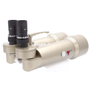 Das Fernglas ist wasserdicht und mit Stickstoff gefüllt gegen Beschlagen von innen. Im umfangreichen Lieferumfang ist ein Transportkoffer und zwei 1,25"-Okulare für 22-fache Vergrößerung enthalten. Es sind alle gängigen 1,25"-Okulare verwendbar.