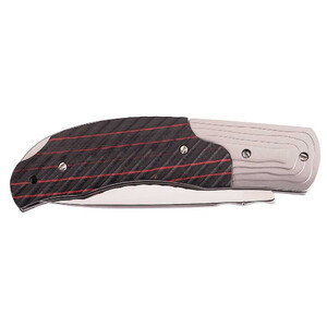 Dieses edle Taschenmesser aus dem Hause Herbertz ist mit einer spiegelpolierten Klinge aus rostfreiem AISI 420 Stahl ausgestattet. Ein Back Lock arretiert die Klinge zuverlässig. Als Griffmaterial kommen Edelstahlbacken und rot schwarzes Pakkaholz zum Einsatz. Dank der ergonomischen Form und der Oberflächenstruktur der Griffschalen liegt das Messer angenehm in der Hand.