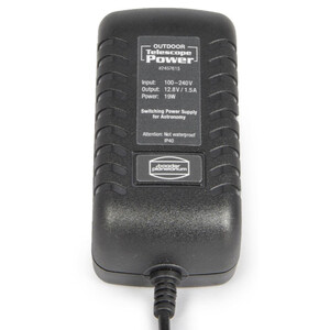 Ein neues Schaltnetzteil für den Aussenbereich, erstmals hergestellt speziell im Hinblick auf die Bedürfnisse von Amateurastronomen in nördlichen Breiten. Dieses 12.8 V/1.5 A Festspannungsnetzteil mit protective-disconnect Winkelstecker passt leistungsmässig zu allen Celestron Montierungen (sogar GE-Pro) und bietet bei etwas höherem Preis grosse Vorteile gegenüber normalen Innenraum Stecker-Netzteilen.