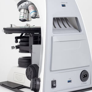 - Trinokularer Kopf für gleichzeitige Beobachtung und digitale Bildgebung