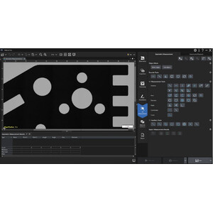 Erweiterte interaktive Messungen, einschließlich automatischer Kantenerkennung und Hilfslinien (beliebige Linie, vertikale Linie, horizontale Linie, Kreis-zu-Kreis-Abstand, Polylinie, Freihand-Polylinie, lineares Lineal, lotrechte Linie, mehrere lotrechte Linien, mehrere parallele Linien, Verengungsdicke, Freihand-Polygon, geschlossenes Polygon, interpoliertes Polygon, Zauberstab, Rechteck, gedrehtes Rechteck, 2-Punkt-Kreis, 3-Punkt-Kreis, Kreis mit Kantenerkennung, Mehrpunktkreis, gedrehte Ellipse, 3-Punkt-Winkel, 4-Punkt-Winkel, Winkellineal, Punktkoordinaten, Mittelpunkt, Punktanzahl)