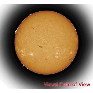 Mit einer Öffnung von 100 mm und einer effektiven Brennweite von 1690 mm (f/16,9) liefert das Teleskop scharfe, vollflächige Sonnenbilder mit hervorragender Auflösung. Die integrierte 4,3-fache telezentrische Barlowlinse ist für den Durchlass der H-alpha-Linie optimiert und sorgt für eine gleichmäßige Ausleuchtung des gesamten Feldes.