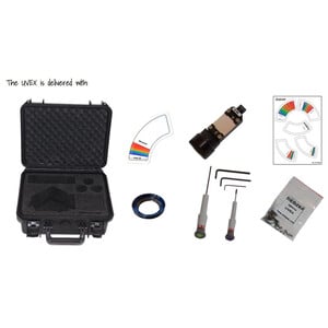 UVEX ist ein besonders vielseitiger Spektrograph. Dank seines achromatischen Designs kann es weit in den Ultraviolett- und Infrarotbereich vordringen – bis an die Grenzen dessen, was heutige Kameras leisten können. Das austauschbare Gitter ermöglicht unterschiedliche Auflösungen. In Kombination mit seinem optionalen Motorisierungsmodul kann er ferngesteuert betrieben werden.