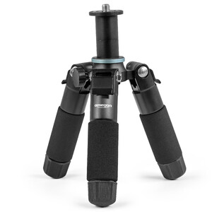 Mit seinem 3/8''-Gewindeanschluss können Sie das Tischstativ vielseitig einsetzen, sowohl für Ihre Himmelsbeobachtungen mit einem Smart Telescope wie dem ZWO Smart Telescope AP 50/250 Seestar S50 oder dem ZWO Smart Telescope AP 30/150 Seestar S30 bzw. über den 1/4'' beiliegenden Adapter auch mit Ihrer Kamera. Bei Nichtgbebrauch wird der Adapter ganz einfach seitlich am Stativ angeschraubt und ist bis zum nächsten Einsatz perfekt verstaut. Das Material des Tisch-Stativs ist eine leichte Aluminiumlegierung und sorgt so für das Gewicht von nur 570g. Zudem überzeugt das Tischstativ mit seinem kompaktem Design. Zusammengeklappt hat es gerade mal 14cm Länge! Die vierfach ausziehbaren Beine sind durch einfache Rotation stufenlos und flexibel verstellbar. Mit der ebenfalls verstellbaren Mittelsäule erreichen Sie eine maximale Höhe von 42 cm. Klappverschlüsse an den Beinen sorgen für Stabilität. Das Extra gibt der 3/8'' bzw. 1/4'' - Anschluss an der Unterseite der Mittelsäule - damit können Sie zusätzliche und ganz besondere Perspektven mit Ihrer Kamera einfangen. Für ein Plus an Flexibilität beachten Sie auch den Omegon Stativ-Kugelkopf Pro OM8.