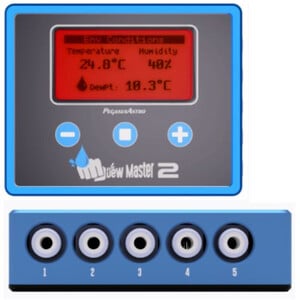 DewMaster wurde für den visuellen Astronomen entwickelt. Schließen Sie bis zu fünf Tauheizungen an und steuern Sie diese individuell über PWM-Tastverhältnis. Die vollständig digitale Bedienung und ein hochauflösendes rotes Display machen die Steuerung des Geräts schnell und einfach. Die verbrauchten Ampere und die Eingangsspannung können auf einen Blick abgelesen werden. Optional informiert Sie ein externer Temperatur- und Feuchtigkeitssensor über die relative Luftfeuchtigkeit, die Temperatur und den Taupunkt. Dank der automatischen Steuerung der Tauheizungen können Sie sich entspannt zurücklehnen, da Sie wissen, dass Ihre Optik bei hoher Luftfeuchtigkeit frei von Feuchtigkeit bleibt.