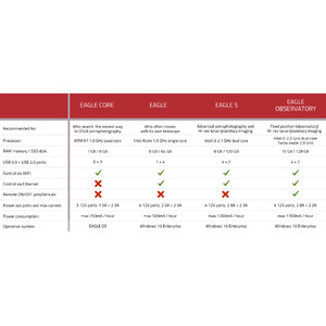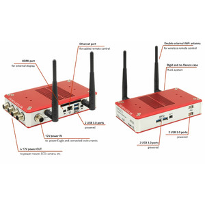 EAGLE steuert die Kamera und anderes Zubehör und versorgt alle Systeme mit Strom. Sie können über WLAN mit EAGLE das gesamte Equipment über das Smartphone, Tablet oder Laptop kabellos steuern. EAGLE basiert auf Windows 10. Sie können mit EAGLE so eine Vielzahl von Programmen nutzen, zum Beispiel: Cartes du Ciel, PHD2 Guiding, BackyardEOS, BackyardNIKON, MaximDL, Voyager.