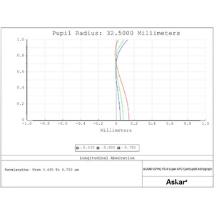 Anders als die anderen Modelle der Serie ist das 65PHQ mit einem fünfachen Linsendesign ausgestattet (Quintuplet). Drei Linsen mit zwei ED-Gläsern bilden das Objektiv, zwei weitere Linsen im mittleren Teil des Tubus den Bildfeldebner (Korrektor). Das ermöglicht eine exzellente Korrektur der chromatischen Aberration und sorgt für eine äußerst minimale Verzerrungen der Sterne am Rand des Gesichtsfeldes.