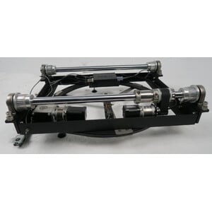 • Durchdacht konstruierte Spiegelfassung: Das Dobson-Teleskop verfügt über ein umfassend stabilisiertes und optimiertes Schwebesystem, das den Spiegel mehr als ausreichend stabilisiert. Das Dreipunkt-Lager zur Kollimation ist von der stabilisierenden, lateralen Halbschlinge gänzlich getrennt. Hierdurch wird der oft anzutreffende Kartoffelchip-Astigmatismus vollständig entfernt, welcher bei der Verwendung eines einfachen Kollimationssystems mit 3 Kollimations-Schrauben durch die Halbschlinge entsteht. Bei einem einfachen Kollimationssystem kann die Kollimation des Primärspiegels dazu führen, dass die Halbschlinge den Spiegel axial an der Spiegelkante anzieht, wodurch der Spiegel zu einer Kartoffelchip ähnlichen Form gebogen wird, was zu einem störenden Astigmatismus führt.