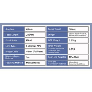 • Schnelles Öffnungsverhältnis von f/4,66: Hohe Lichtsammelleistung für die Aufnahme von Weitfeld-Deep-Sky-Objekten, die selbst bei kurzen Belichtungszeiten Details erkennen lassen.