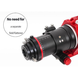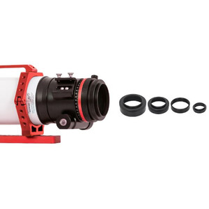 Mit dem integrierten Flattener bietet der FF80 große Vorteile bei der Astrofotografie: Er leuchtet Vollformat-Sensoren aus und gewährleistet eine feine Abbildung mit punktförmigen Sternen auf der Achse. Der Apochromat wird mit einer ausziehbaren Taukappe, einem 3" Okularauszug mit 360° Rotation, Vixen/GP-Sucherschuh, sowie mit vier verschiedenen Kamera-Adaptern (M76, M68, M54 und M48) geliefert. Der Tubus selbst wiegt 3,9 kg, mit Rohrschellen und Schiene beträgt das Gewicht dann 4,7 kg.