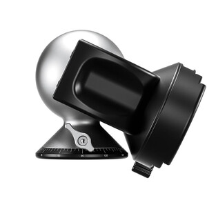 Mit nur einem Handgriff können Sie die Klemmung an der großen Kugel lösen und die Ausrüstung in alle Richtungen schwenken und drehen. Für den horizontalen Schwenk steht ein separater Panoramadrehteller zur Verfügung. Mittels der kleinen Einstellschraube am Griff können Sie die Friktion justieren. Durch den besonderen Aufbau hat der Kugelkopf keinen Höhenversatz bei der Klemmung.