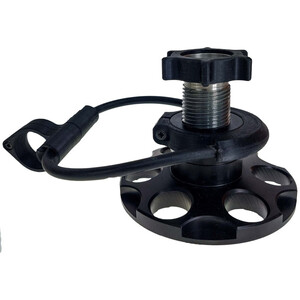 Der Nivellierfuß ermöglicht die einfache und genaue Feinjustierung des Statives. So kann jede Montierung im aufgebauten Zustand genau ausnivelliert werden. Der große Durchmesser von 98 Millimeter verhindert ein Nachsinken auf weichem Untergrund und ermöglicht so eine gute Lastauflage und zusätzliche Stabilität.